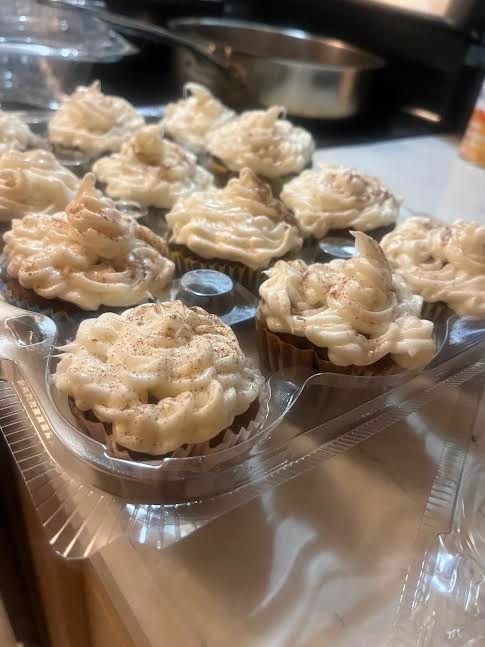 Making these cupcakes was fun, especially because I made them with one of my friends. The allspice seasoning is a twist I threw on them because I just felt like it needed something extra. Everyone who tried it enjoyed that twist. So if you’re making these at home, don’t be afraid to throw your own twist onto it! I brought 12 cupcakes to school, and they were gone fast! People loved the texture and the perfect combination of the sweetness and spice. My favorite part was seeing people’s reactions to eating the cupcakes, as they were just immersed in the fall spirit. These cupcakes were very simple to make, they smell like fall, and they were very well liked, so if you are looking for a way to celebrate fall, try making pumpkin spice cupcakes!